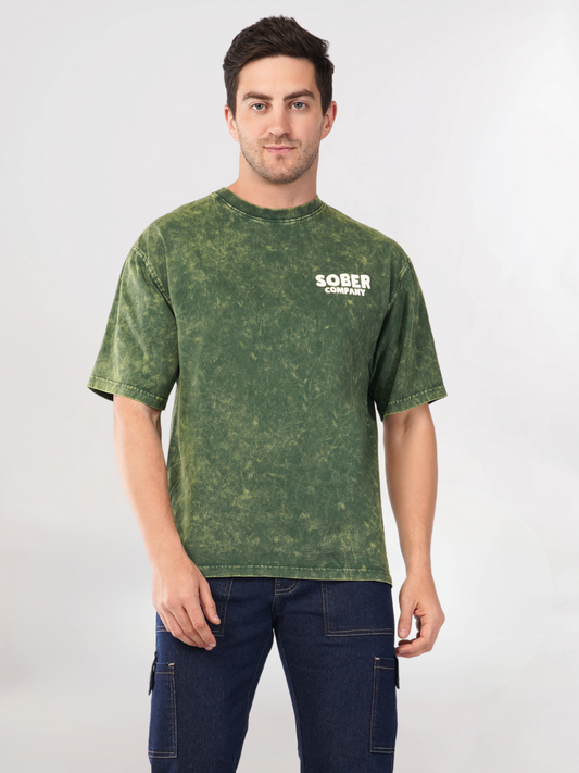 BOTTLE GREEN ACID WASH OVERSIZED T-SHIRT