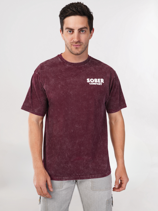 MAROON ACID WASH OVERSIZED T-SHIRT