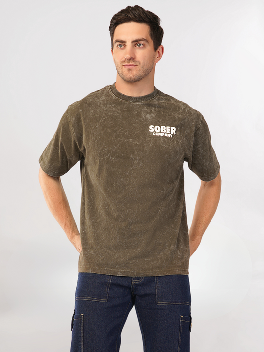 OLIVE GREEN ACID WASH OVERSIZED T-SHIRT